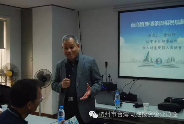 五月十三日下午,在协会会议室举行“台商资产传承与租税规划”教育讲习会,由台湾个人财产规划人员协会理事长罗友三会计师主讲,李品璋副会长、白奇玄副会长拨冗参加,有三十余位会员到场听课。感谢杭州儒卡贸易陈姿谕总经理为讲习会提供小点心(粽子)和杭州米朗琪餐饮张硕政总经理的咖啡,给本次讲习会增色添彩,温馨如家! |