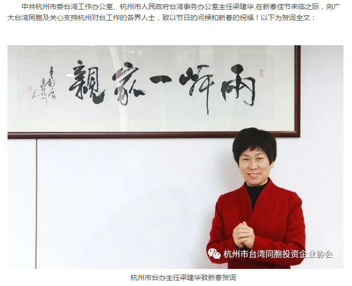 辞旧锦鸡歌日丽,迎新瑞犬报年丰。值此2018新春佳节来临之际,我谨代表中共杭州市委台湾工作办公室、杭州市人民政府台湾事务办公室全体工作人员,向广大台湾同胞和关心支持杭州对台工作的各界人士,致以最衷心的感谢和最诚挚的祝福!祝大家新春吉祥,阖家安康!